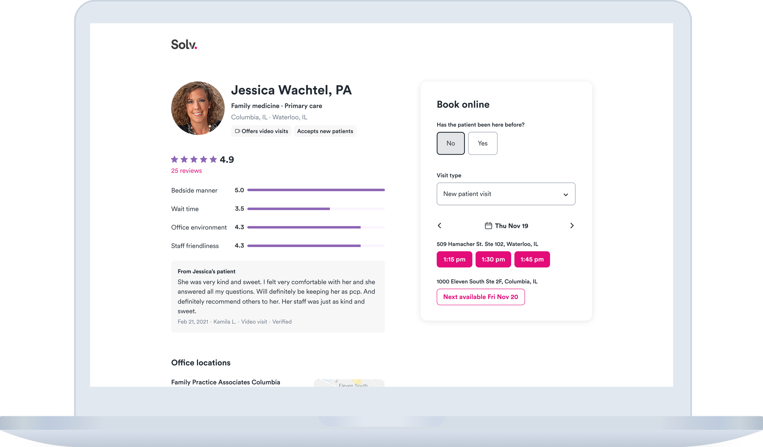 A provider might have different availability, locations, modalities (video v. in-person visits), and types of appointments available depending on the patient needs.