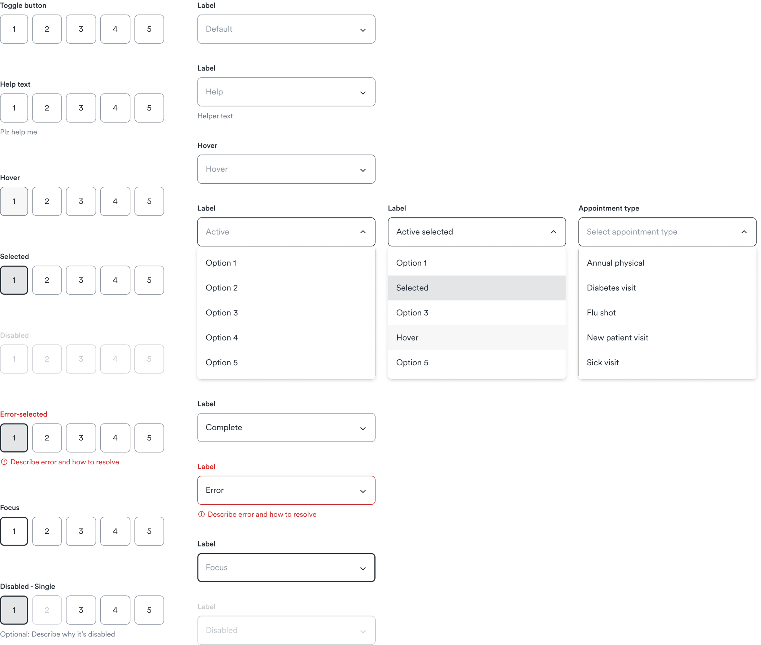 Toggle buttons and dropdowns