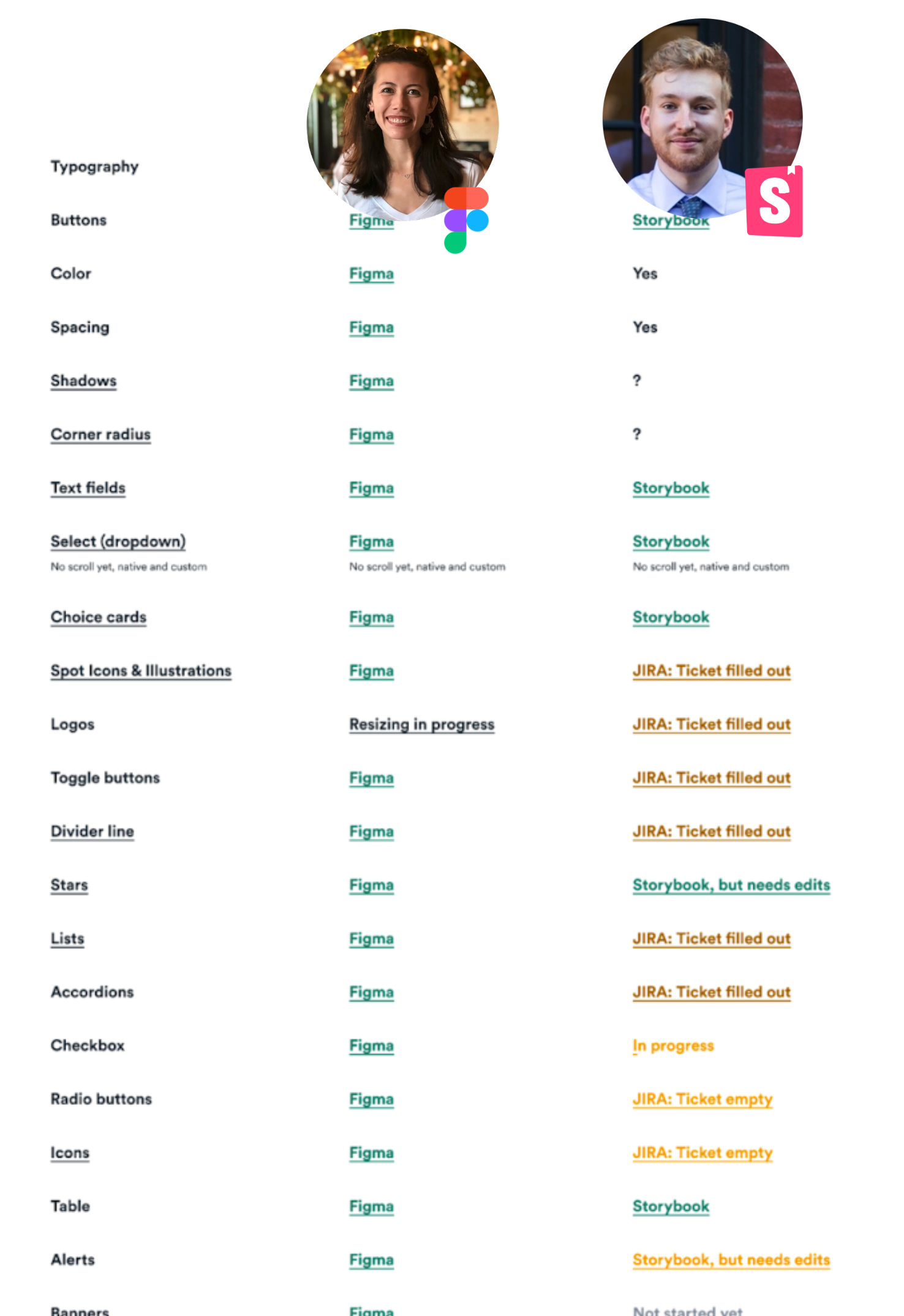 As I wrapped up Figma components, it became unsustainable for our engineering partner to ship all the Storybook components solo. We gained buy-in from EPD leads to share the efforts across the engineering team by embedding component creation into our product development process.