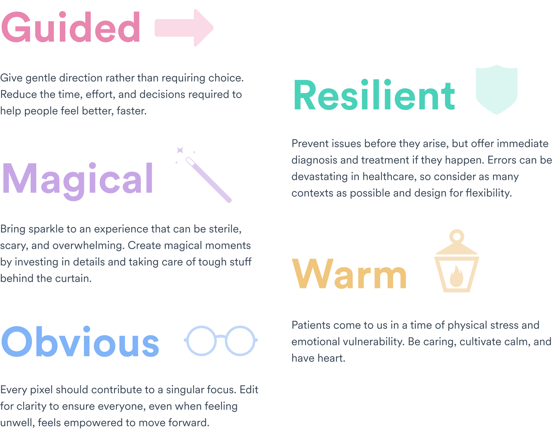 I led workshops with the designer and head of product to determine high-level design principles that could guide decisions moving forward.